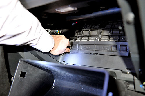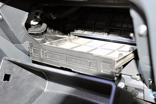卸下儲(chǔ)物盒,可看到空調(diào)濾芯